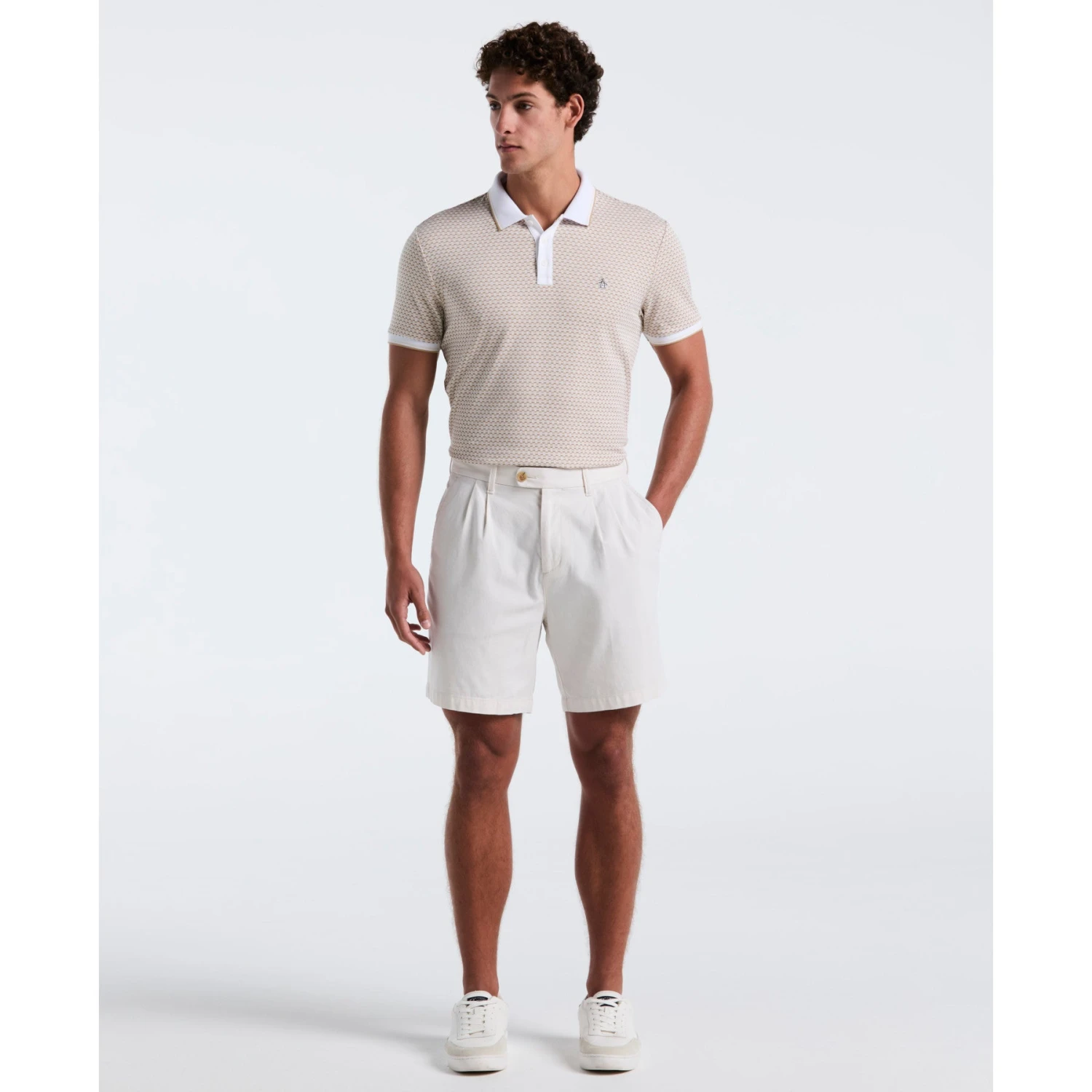 Original Penguin Martini Print Polo Shirt In Birch(Martini Print Polo Shirt Beige Opkf2512gp 252)