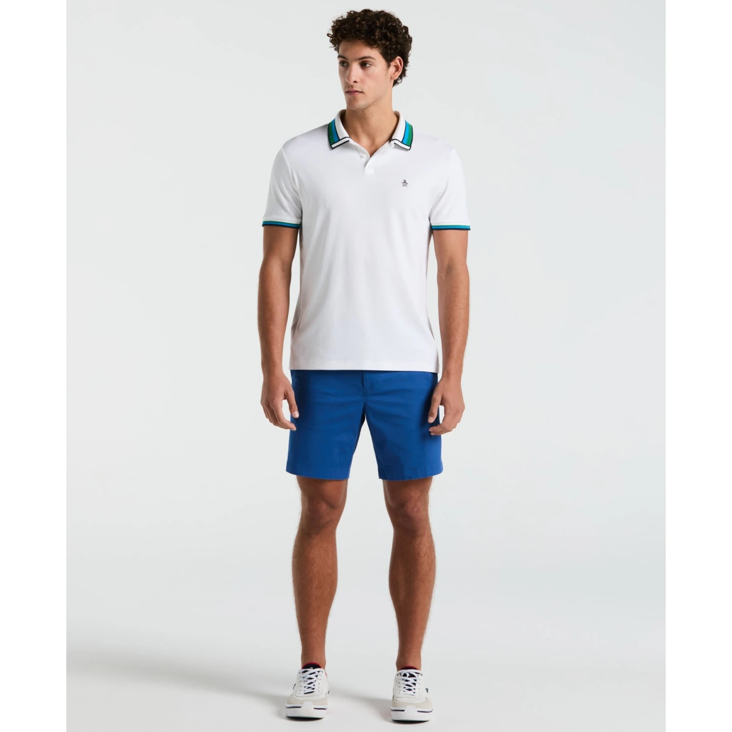Enhanced with TENCEL™ fibers for added strength and comfort, these men’s chino shorts from Original Penguin are a great choice for everyday adventures in the warmer months. The versatile solid-coloured shorts are made with lightweight twill fabric, with added stretch to help ensure a flexible fit. Pair these slim-fitting men’s casual shorts with a tee shirt or polo for effortless style.