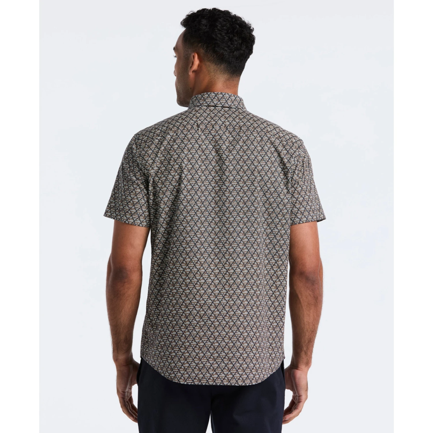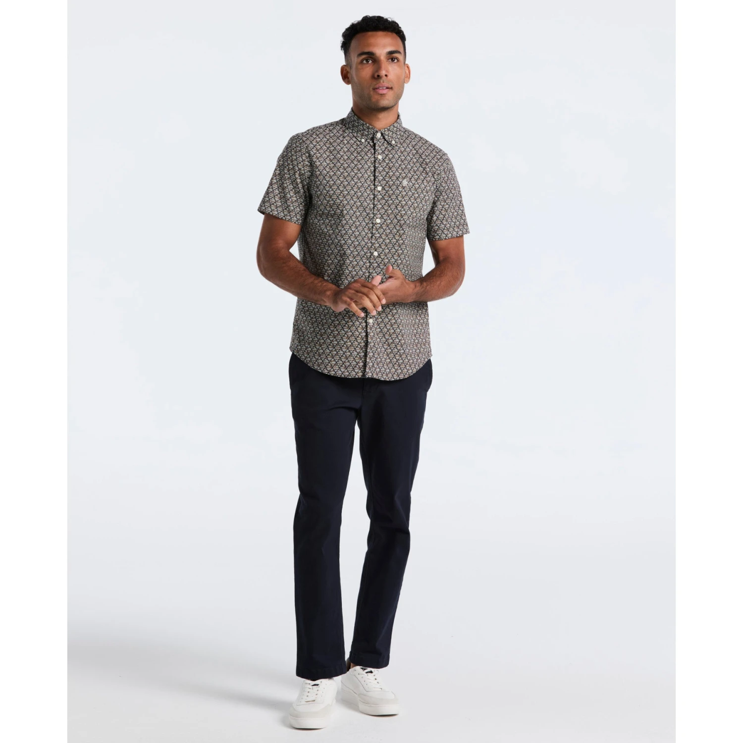This Original Penguin men’s shirt features a stylish diamond geo print that’s sure to turn heads. The men’s short sleeve shirt is made from breathable cotton plain weave fabric, and is enhanced with stretch to keep you comfortable throughout your day. The slim fit offers a modern, flattering profile and the classic summary-down collar keeps you sharp and stylish whether you’re at work or play.