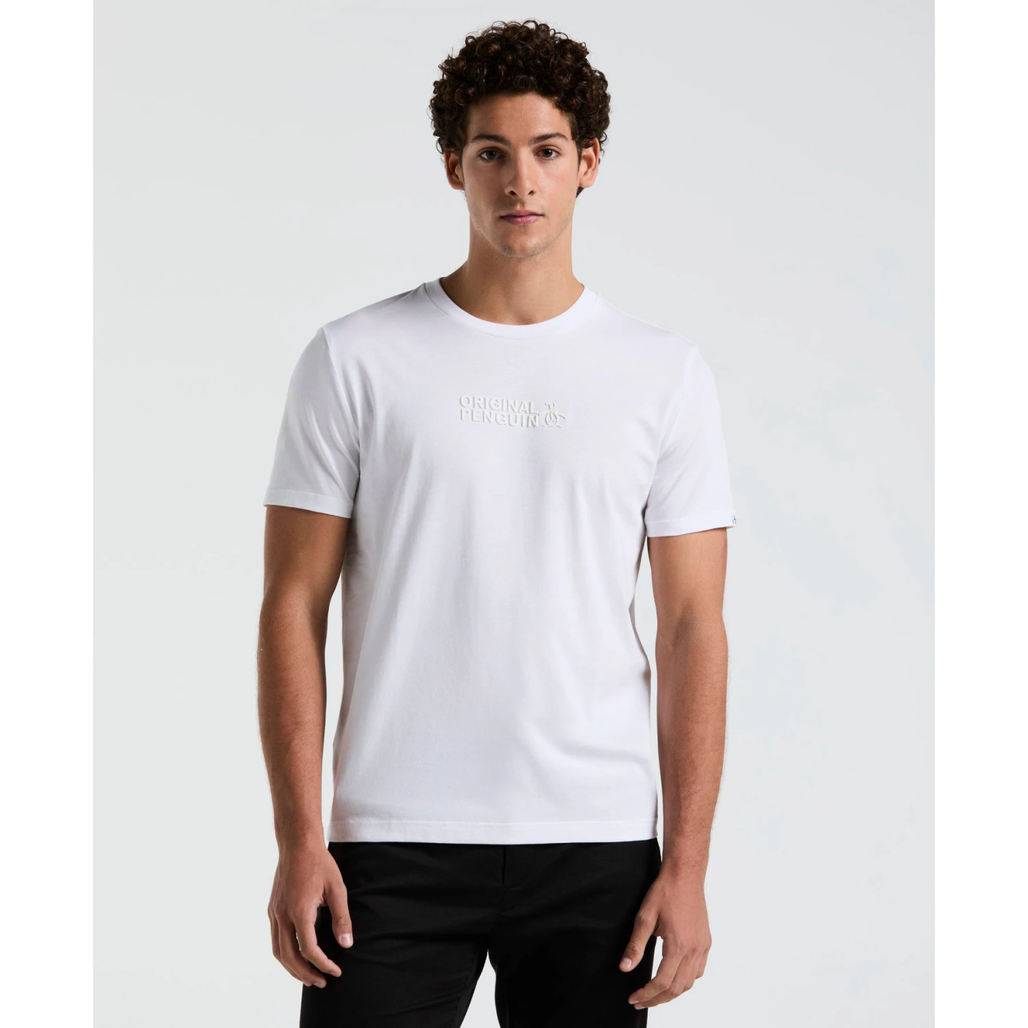 Give your casual wardrobe a fresh update with this Original Penguin graphic tee and its eye-catching tonal silicon logo. Great for everything from relaxing at home to running errands around town, the men’s t-shirt is crafted from breathable cotton for all-day comfort. Jersey fabrication gives the material a smooth, lightweight feel, making it ideal for wearing both as a standalone top and layering under sweaters and coats.