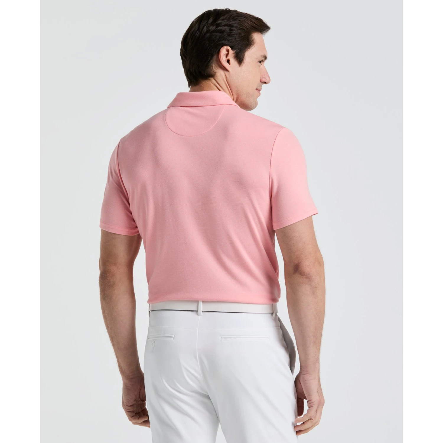 Polish up your golf attire with this Original Penguin men’s polo that delivers elevated style. Double knit fabrication is thick and durable, while added stretch ensures a comfortable fit perfect for game play. Moisture-wicking properties ensure you stay fresh and dry even as the temperature rises. A matching self-collar, subtle stripe, chest pocket and 3-summary placket bring the style together to have you looking sharp on the course.