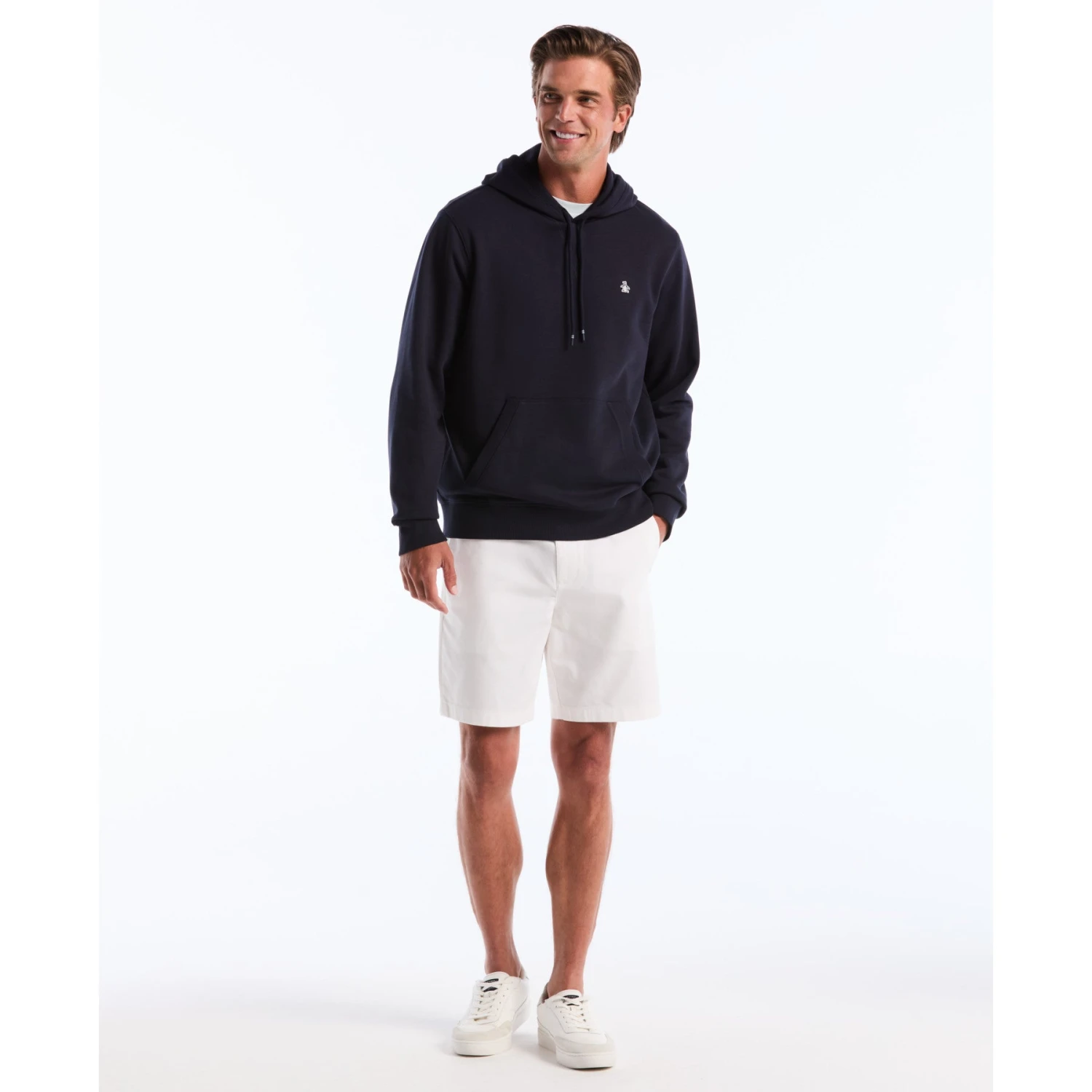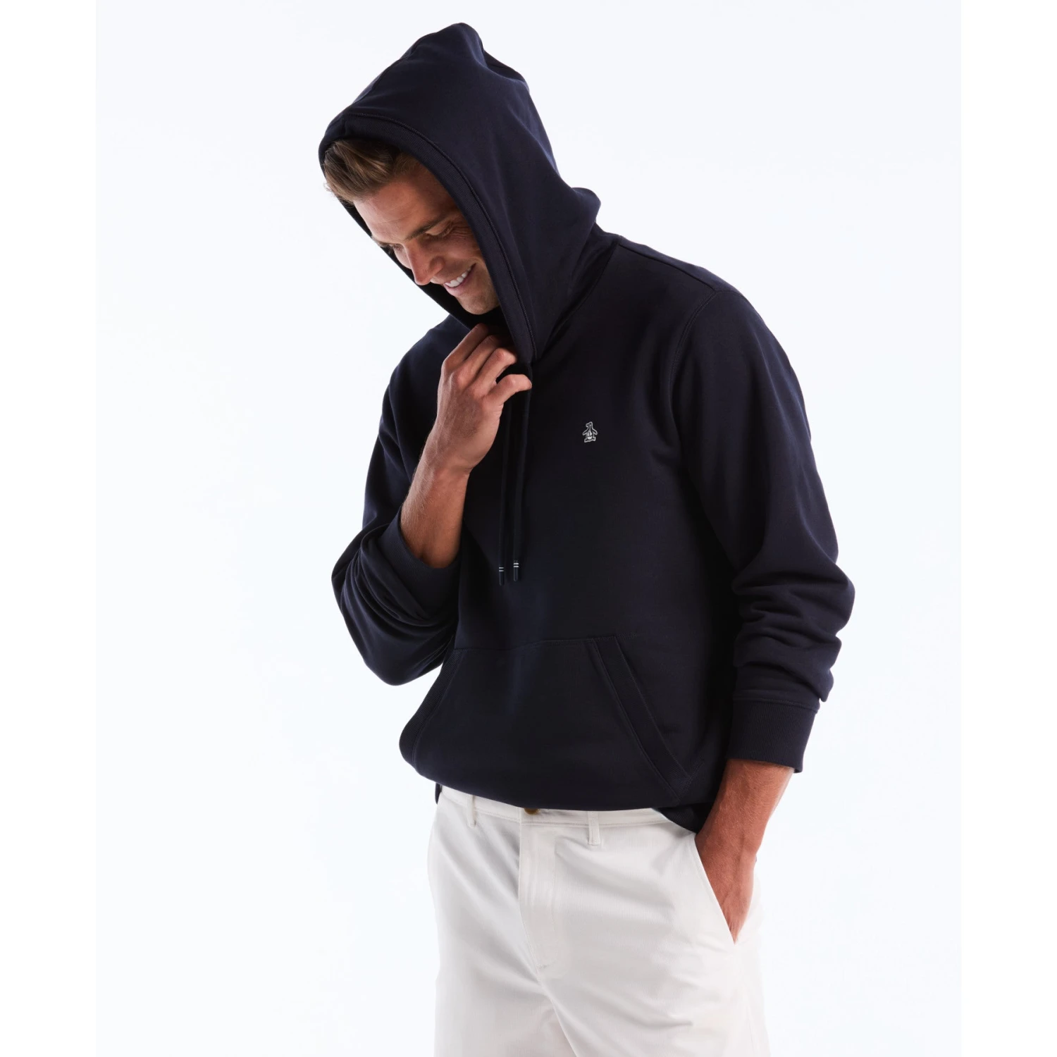 Layer up in comfort with this Original Penguin men’s hoodie thanks to its soft, brushed fleece fabric. The classic hooded design features a large kangaroo pocket and ribbed details that make it a perfect match for joggers, jeans or chinos. This cosy hoodie is finished with our beloved mascot Pete the penguin, who makes on appearance on the chest, giving his seal of approval.