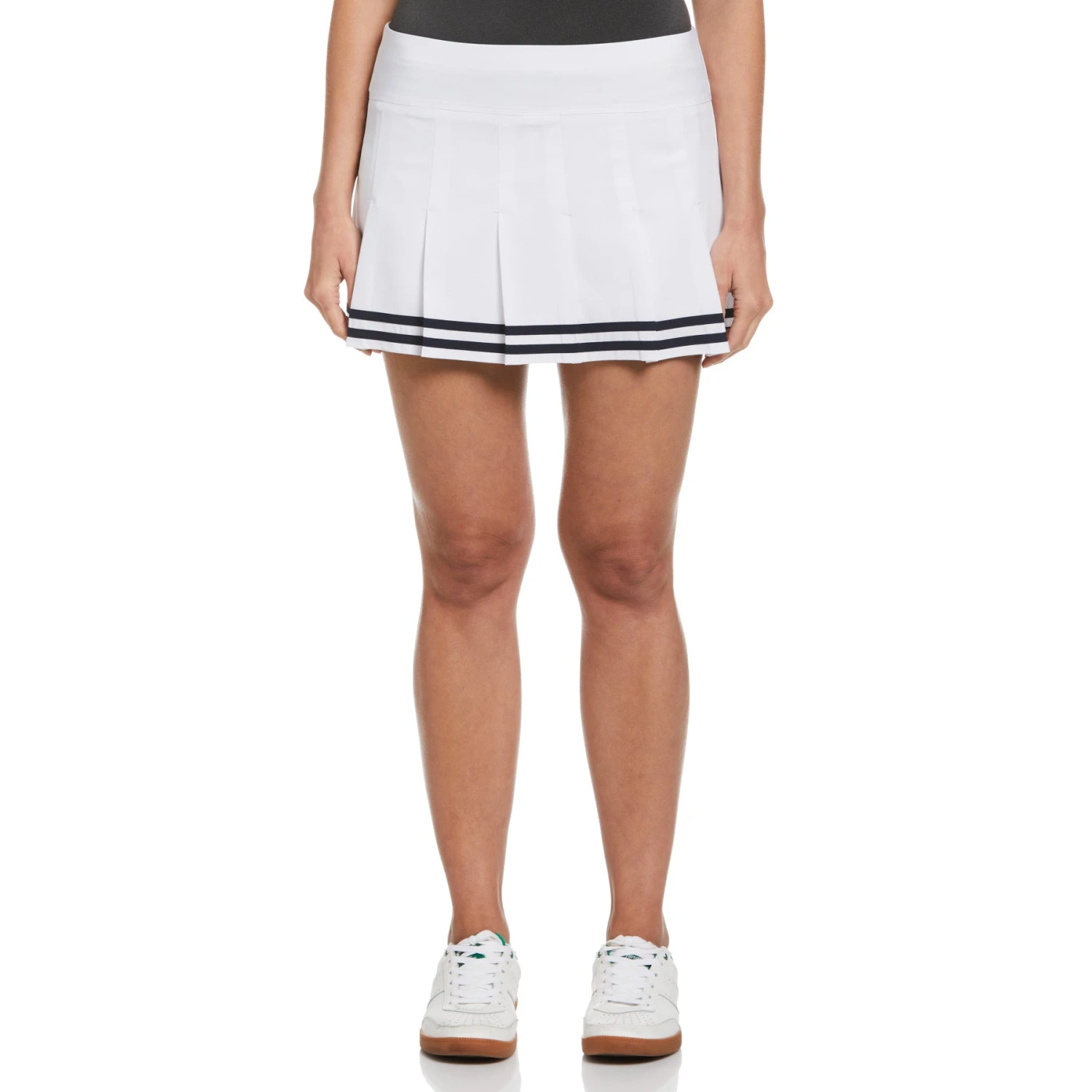 Enjoy winning style in this pleated tennis skort with eye-catching contrast striping. The moisture wicking stretch fabric looks and feels great.